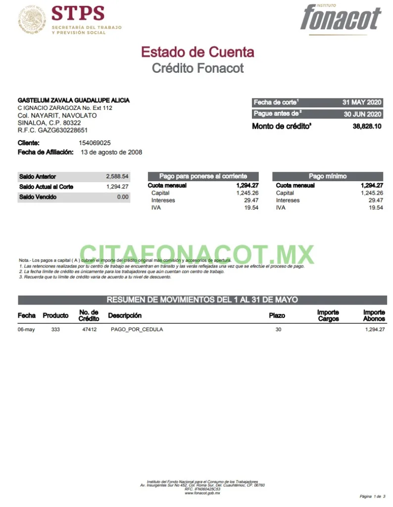 Paso 5: Consulta el histórico de tu crédito desde tu estado de cuenta FONACOT